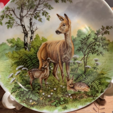 Pyntetallerkener med orrfugl, hjort og rådyr selges samlet. Kaiser porselen west germany.