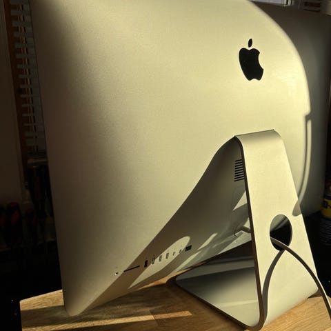 Apple iMac 21,5-tommer stasjonær PC med macOS Catalina, 3,6 GHz Intel Core i3-prosessor, 8 GB RAM, 1 TB lagringskapasitet og Radeon Pro 560X grafikkort. Inkluderer trådløst tastatur og mus.