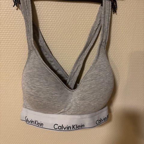 Calvin Klein sports-BH i størrelse M, laget av bomull. BH-en har svart farge med hvite stropper.