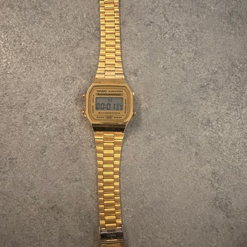 Casio unisex klokke med metallarmbånd og digital dag- og datovisning. Klokken har en firkantet urskive med analog og digital display, og er laget i rustfritt stål.