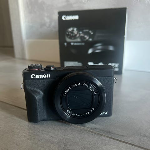 Canon PowerShot G7 X Mark III kamera med kompakt design. Kameraet er i svart farge og egnet for fotografering og videoopptak. Modellen er kjent for høy bildekvalitet og brukervennlige funksjoner. Selger for 11000, har ventet over 6 måned, har åpnet men ikke brukt, kam sendes eller hentes i Oslo, kvittering følger med