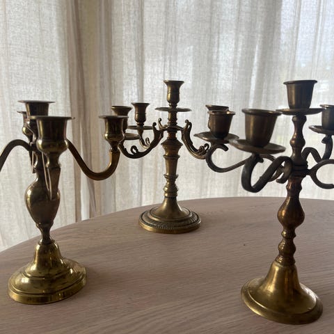 Messing lysekrone med fire armer, egnet for montering i tak.