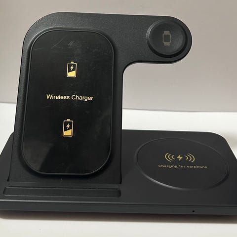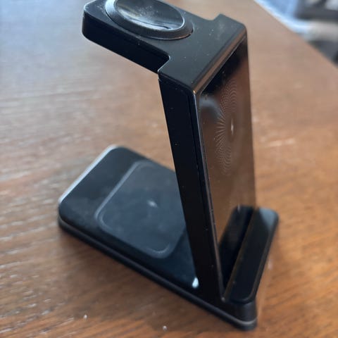 Trådløs lader til iPhone og Apple Watch. Kabel følger ikke med. Men dette er usb-C, så lett å få tak i selv