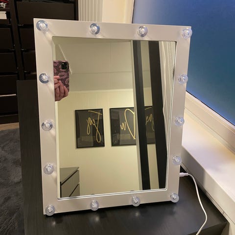 Northlight speil med dekorativ LED-belysnin. Kjøpt på Clas Ohlson for 399,- men ble ikke brukt. Fint sminkelys drevet av AA batterier