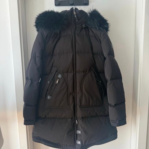 Cedrico Vinterjakke for kvinner i størrelse XL. Jakken er svart og laget av dun, lang og egnet for kalde værforhold.