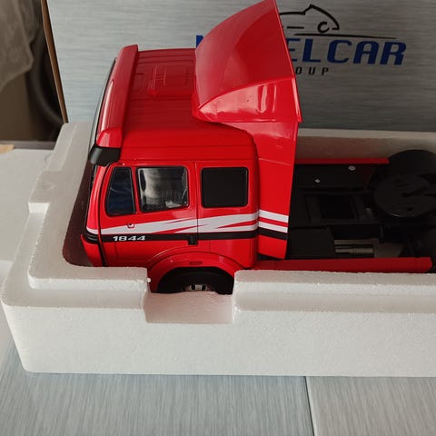 Mercedes AMG GT Black Series modellbil i oransje farge. Detaljert modell som representerer sportsbilen med karakteristiske sorte detaljer og AMG-logoer. Egnet for samling eller utstilling.