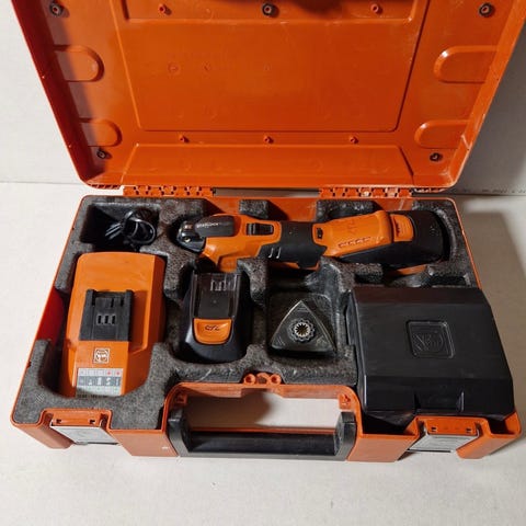 - Unikt kjølesystem styrer kjøleluften bort fra bruker -Følger med lader, 2 stk. batterier og 1 SMD57 med bits -Gips til tre eller stål