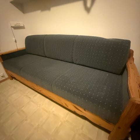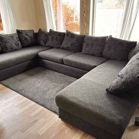 Stor og praktisk sovesofa i god stand med god oppbevaring plass til sengesett.
