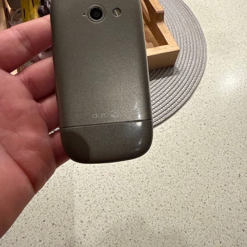 Doro 6881 flip telefon i rød farge. Telefonen har et sammenleggbart design som gir kompakt størrelse ved ikke bruk. Den har store knapper for enkel navigasjon og en ekstern skjerm for varsler og samtaler. Telefonen er egnet for brukere som ønsker en enkel og praktisk mobiltelefon.
