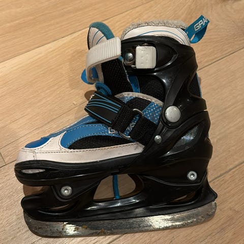 Graf Ishockey skøyter for barn i størrelse 27-30, justerbar skøyte. Skøytene har svart og hvit fargekombinasjon og er egnet for ishockey.