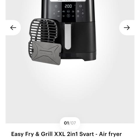 OBH Nordica Easy Fry & Grill XXL 2in1 frityrkoker og grill i svart farge. Inkluderer to separate matbeholdere for frityrsteking og grilling. Digitalt kontrollpanel med temperaturinnstilling opptil 220 grader. Stor kapasitet 6.5L for tilberedning av ulike matretter. Noen bruksmerker som vist på bilder. Ellers funker airfryeren som den skal.