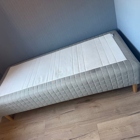 Ble kjøpt helt ny for cirka 2 år siden og har stått på gjesterom. Den er god som ny og trekket på overmadrassen kan vaskes.