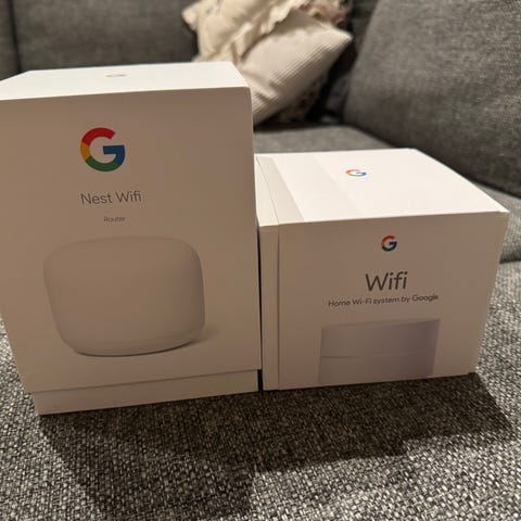Google Nest Wifi Router i hvit farge. Tror det er gen 3.
