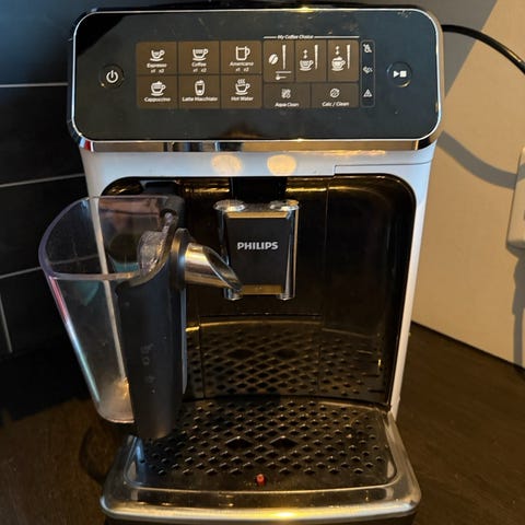Også integrert melkeskummer, medfølger også skinner til montering.
