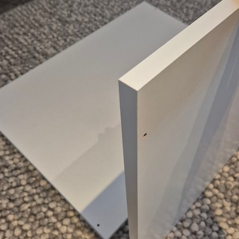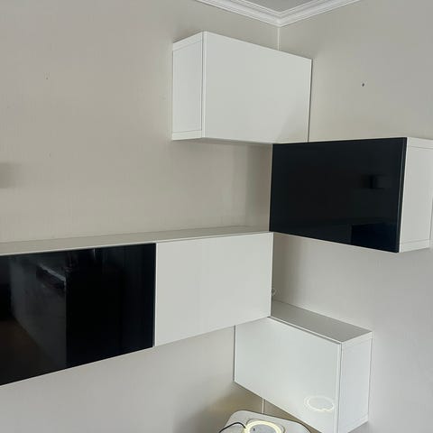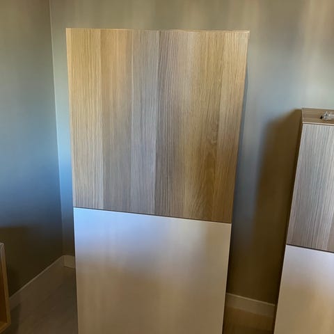 -Hvit med innfelt håndtak i eik. 2stk str 60x60 dører og en skuffefront. (300kr samlet)