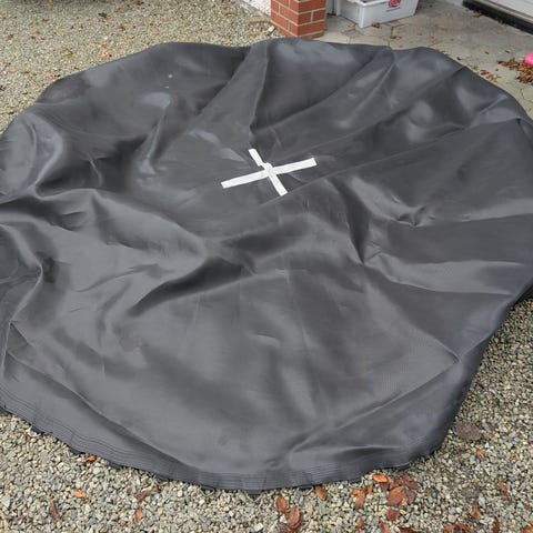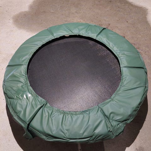 Trampoline gis bort ved demontering og henting. Sikkerhetsnett fremstår slitt, noen av fjærene er rustet men alle ser ut til å være hele ut fra hva jeg kan se. Beskyttelsen som ligger over fjærene er slitt. Trampolinen er lite brukt, den er noen år gammel og har stått ute. Se bilder, gis bort som den står. Står i Sandnes.