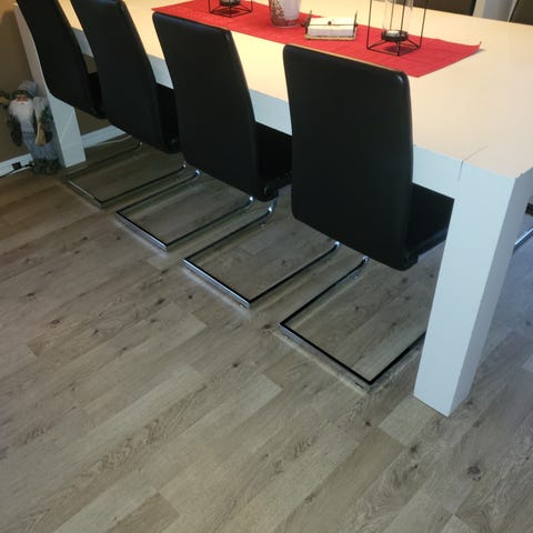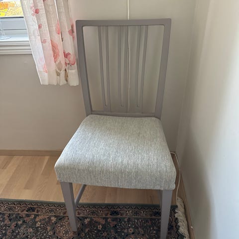 Bord, 6 stoler og vetrineskap gis bort mot henting.
