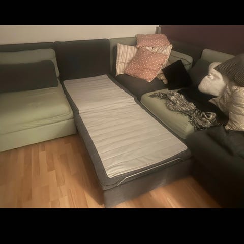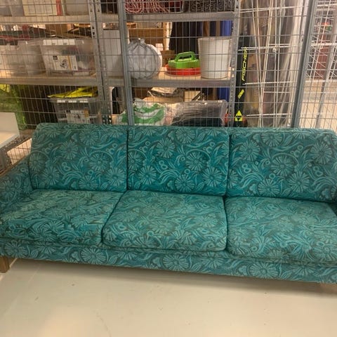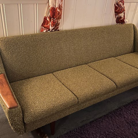 Sofaen kan lett gjøres om til seng og er en praktisk klassiker fra 60/70 tallet og lite brukt.