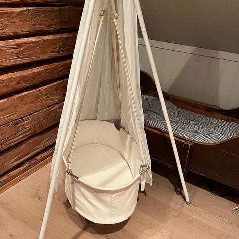 Veldig god kvalitet. Vasket og klar til bruk! Vi har hatt den hengende i taket med fjær fra moonboon😊