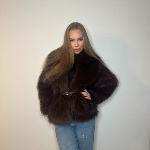 Culture svart fuskepels i str. S(normal på størrelsen.) Veldig skinnende og myk fuskepels. Stikklommer i sidene og ingen lukning i front. Helt ny med tags. Ubrukt gave og kostet ny rundt 2000.-