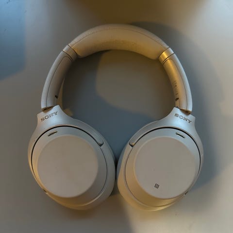 Sony WH-1000XM3 hodetelefoner med over-ear design i svart farge. Hodetelefonene har polstrede øreputer og justerbar hodebøyle. Leveres med bæreveske og tilkoblingskabler. Det er synlige tegn på bruk med teip på hodebøylen.