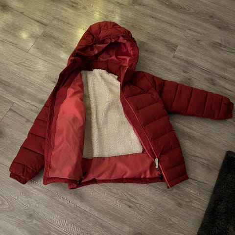 Foret og god vinterjakke til barn str 122. Ingen hull eller slitasje, men har fått noen merker på magen fra løvetannblomster.