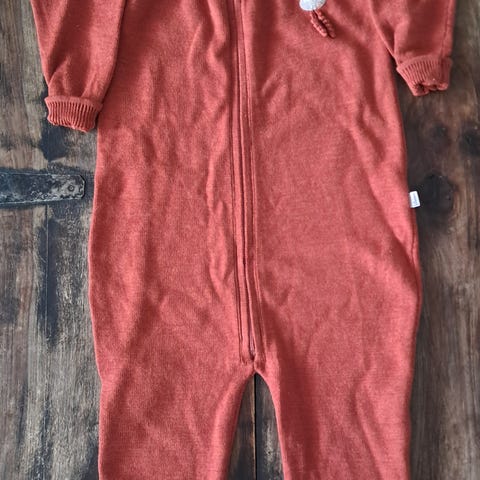 Lite hull sydd pent på jakka, vises ikke når i bruk (sydd nederst på innsiden glidelåsbeskyttelsen, se egen bilde) + svak misfarging på mansjetter. Buksa er relativt lite brukt.