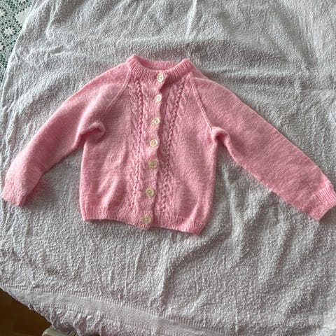 Grønn hjemmestrikket cardigan med knapper , ca 3-4 mnd