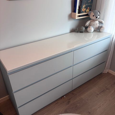 Kommoden er solid, romslig og praktisk, og passer fint på barnerom, soverom