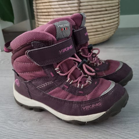 Støvlene er lilla, varme og gode i alle slags vær. Fóret er i ullblanding.