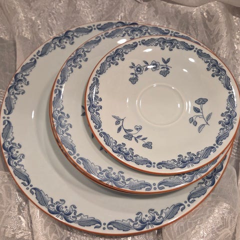 Rørstrand sitt mest solgte servise helt tilbake fra 1930. Det er også kåret til århundrets service. Tåler oppvaskmaskin. Delene er fine, 2 stk deler har ett skår, en middagstallerken og ett asjett. Ellers ingen slitasje.