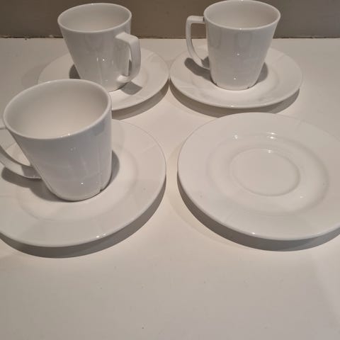 Rosendahl kopp i hvitt porselen. Settet inneholder 4 kopper. Designet for daglig bruk, egnet for servering av varme drikker.
