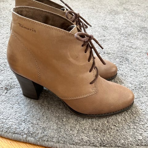 Tamaris ankelskolett i skinn, str 35, brukt 1 gang.
