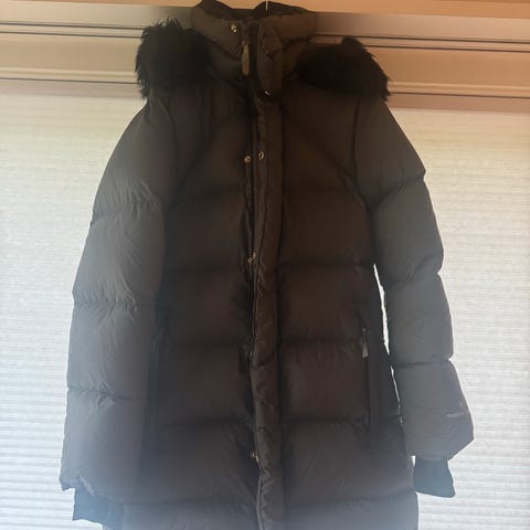 Fleischer Couture Annet yttertøy for dame i størrelse M. Jakken er svart og laget med dun som isolasjonsmateriale. Str 40.