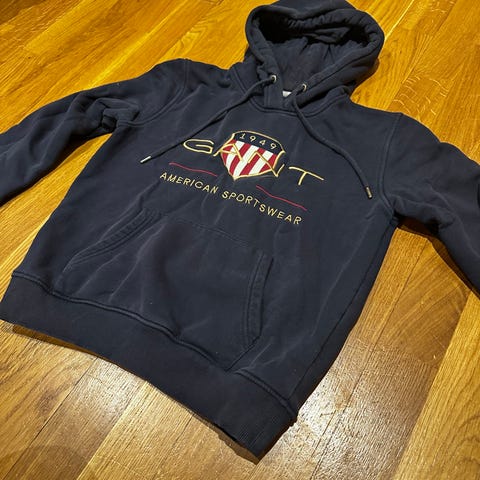 GANT hettegenser i størrelse S for dame. Den har et dekorativt merke på brystet med GANT-logoen. Pent brukt.