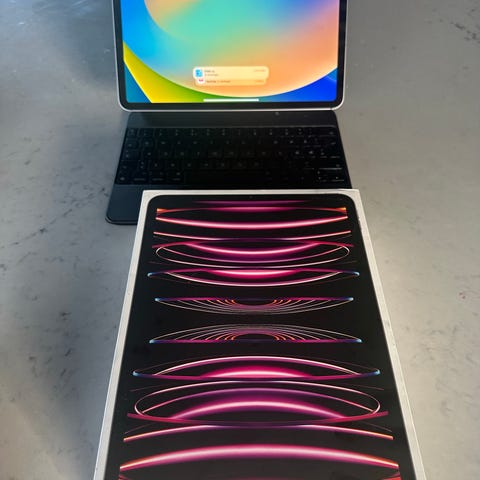 Selger en iPad Pro 13” (2024-modell) med 256GB lagring og WiFi i fargen Stellarsvart.