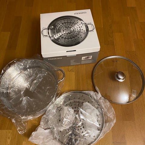 Perfekt til damping eller posjering av hel fisk. Inkluderer perforert innsats og lokk med håndtak.