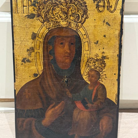 Jomfru Maria som holder Jesusbarnet selges billig I stand på bilder