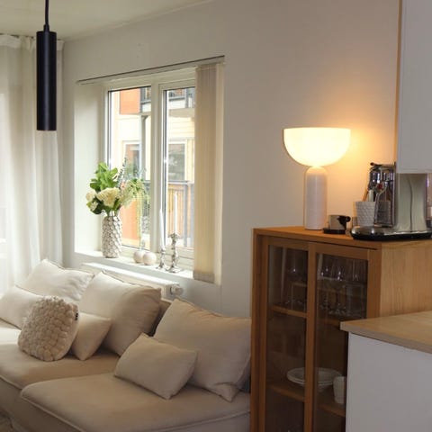 HAVSTA Vitrineskap fra IKEA i gråbeige.