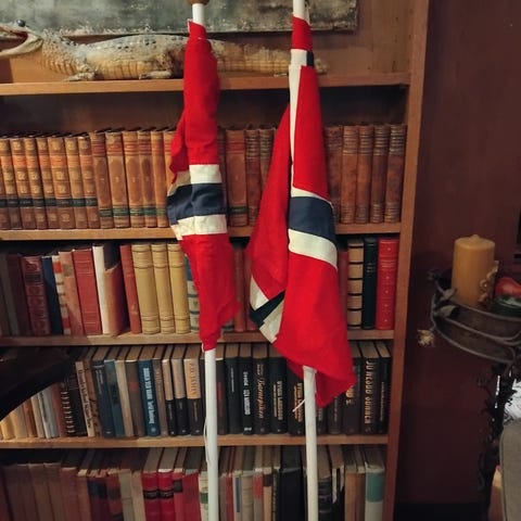 Flott balkongflagg selges! Flagget måler 72 x 54 cm.