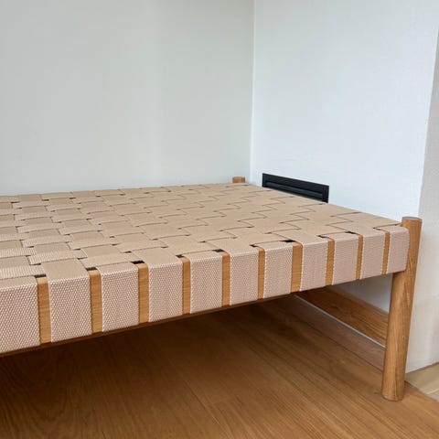 Daybeden er laget i høykvalitets eikeplater som gir et estetisk uttrykk. Denne selges billig da vi skal flytte.