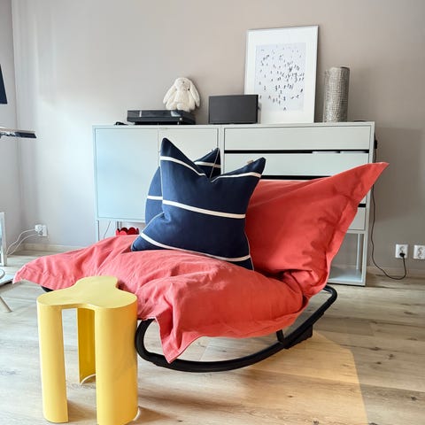 Den kan deles i tre deler, og er derfor ikke problematisk å frakte. Tilpassede puter følger med.
