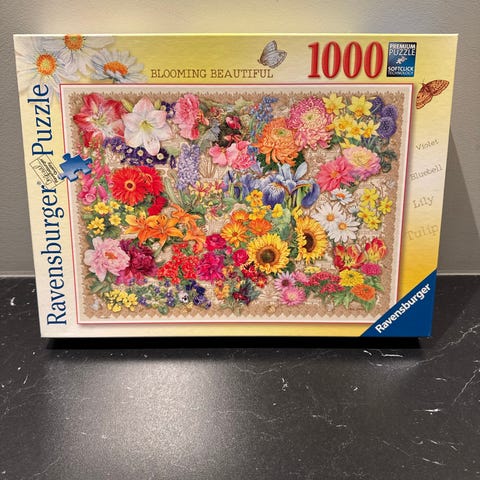Ravensburger Rainbow of Birds puslespill med 1000 biter. Motivet viser fargerike fugler. Puslespillet er puslet én gang.