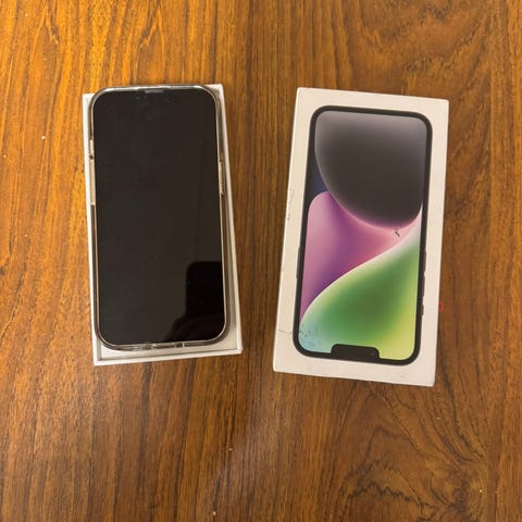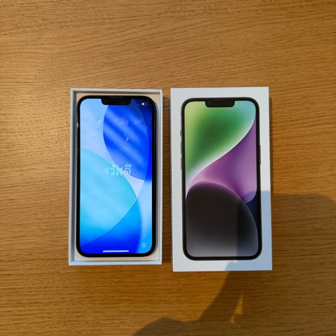 iPhone 14 med 256 GB, 88 % batterikapasitet. Har alltid blitt brukt med deksel og skjermbeskytter. Eske følger med. Kjøpt ny for 2 år siden.