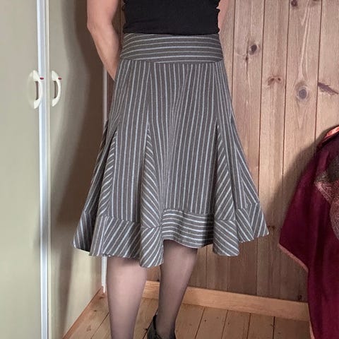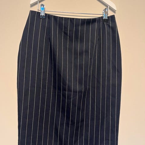 Svart ullskjørt med dus rosa kant. Ren ull. Fra Twin-set, Simona Barbieri. Tung fall.