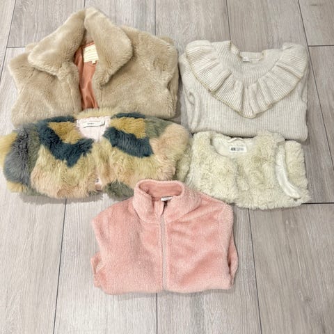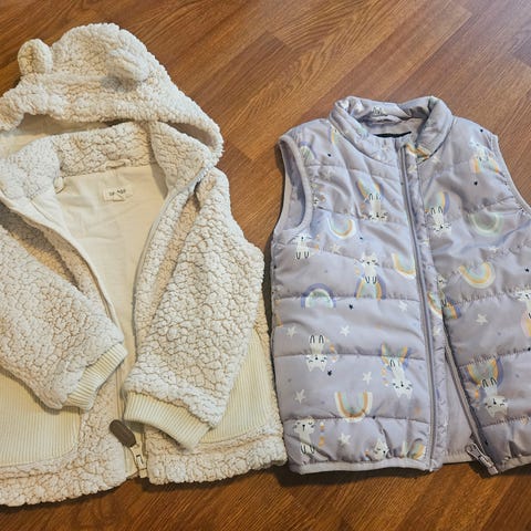 Selger pels jakke og Pels vester str110-116 bilig pris 150 eller 50kr per stk.