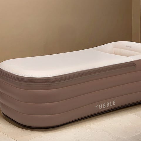 Oppblåsbar badekar i hvit farge, designet for enkel oppblåsing og bruk. Laget av slitesterkt materiale og har en oppreist ryggstøtte for komfort. Egnet for bruk i hjemmet eller på reise der fast badekar ikke er tilgjengelig.