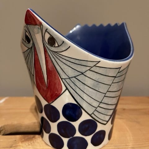 Liten villsvin keramikkfigur i brun og grønn glasur.