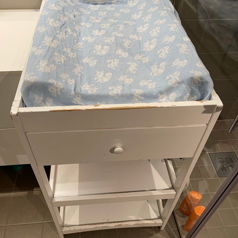 Noe fuktskade på føttene som har stått nærmest dusjen.