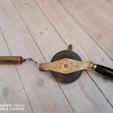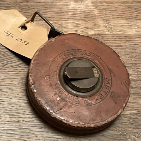 Antikk målebånd lengde 66 feet, av ukjent fabrikat.